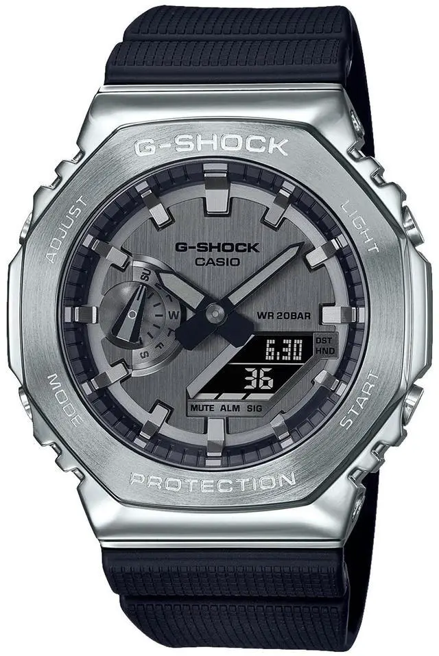 Go sleek, sharp and bold with the new black band and silver stainless steel bezel GM2100-1A in a metal-clad octagonal take on the original iconic design.