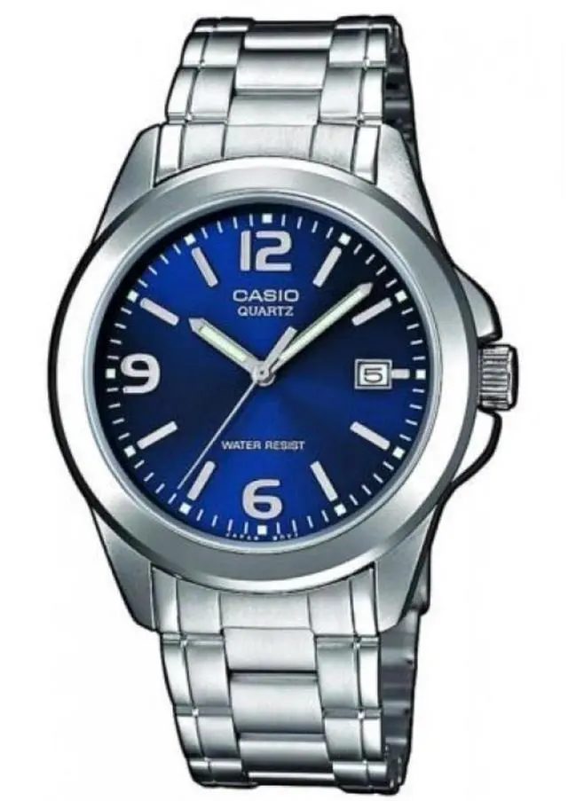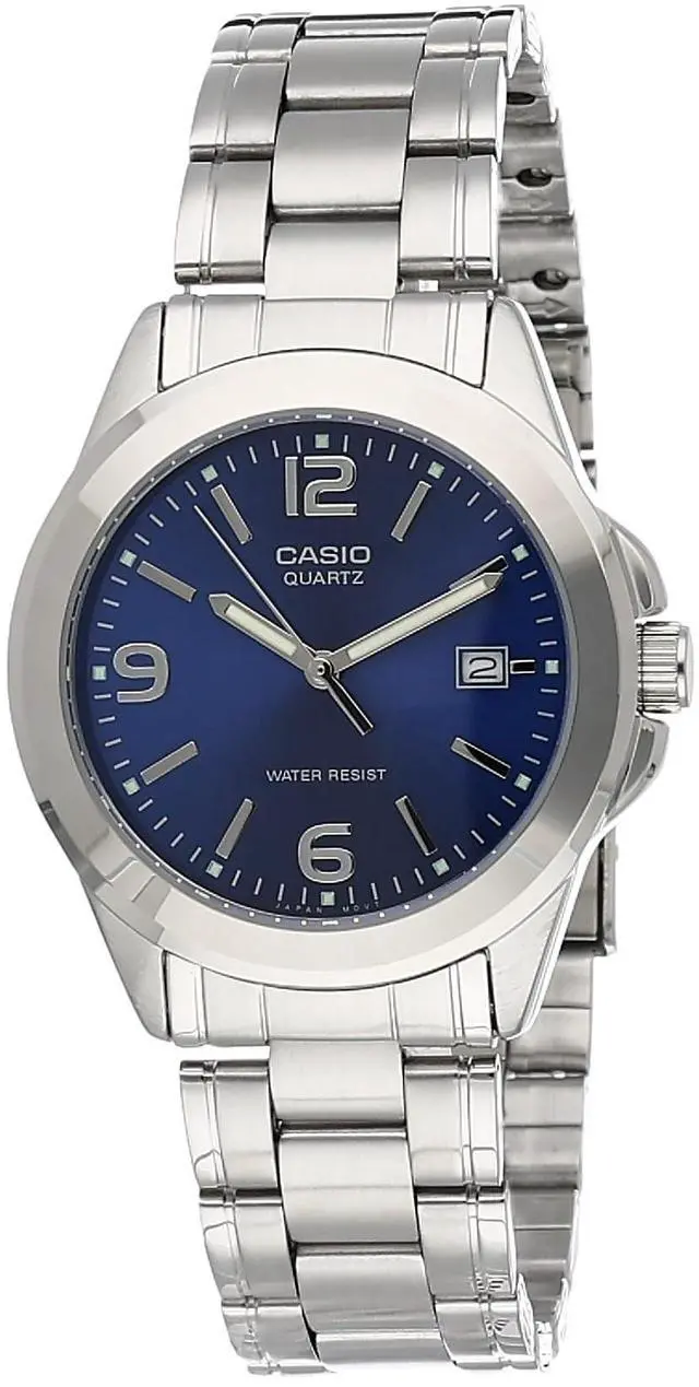 The Casio MTP-1215A-2A is a classic mens analog watch that blends everyday practicality with refined design. It features a bold blue dial complemented by silver-tone hour markers and a date display at 3 oclock. The stainless steel case and bracelet add a polished touch, making it perfect for both casual and formal wear. With mineral glass protection and water resistance suitable for daily use, this timepiece delivers durability and timeless style.