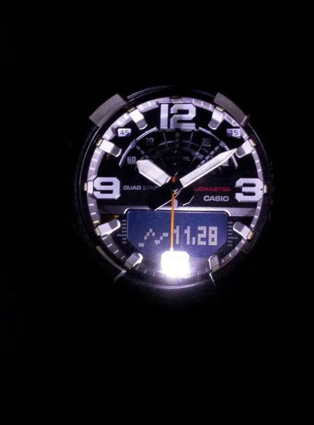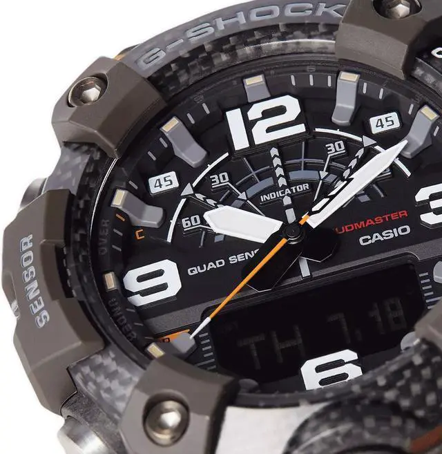 This is a model from the G-Shock Mudmaster Series, designed for use in extreme environments scattered with rubble, dirt and debris, and uses carbon materials. The use of high rigidity carbon on the case keeps damage and deformation at bay, and ensures a high level of airtightness and shock resistance. This model also features a filter that protects against the invasion of mud, a stainless steel panel back, and a back cover made of shock-resistant fine resin embedded with glass fibers, giving it a high level of resistance to dust and mud.