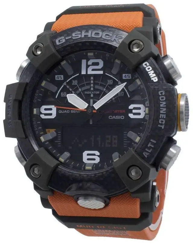 Casio GG-B100-1A9 Men's G-Shock Mudmaster Carbon Core Analog Watch, Orange/Black