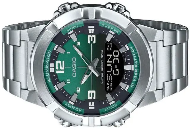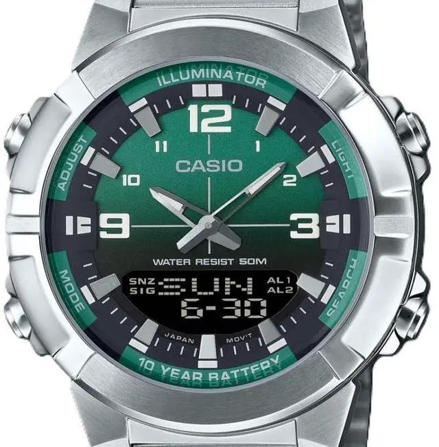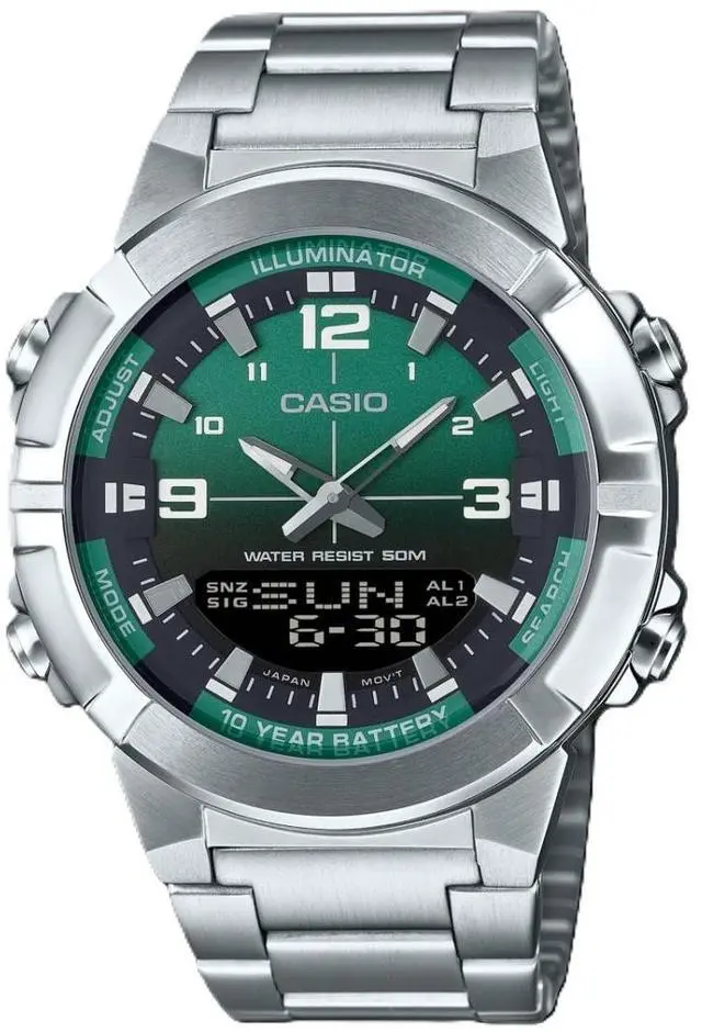 Casio Analog Digital Combination Stainless Steel Green Dial Quartz AMW-870DA-3AV AMW870DA-3 Men's Watch
