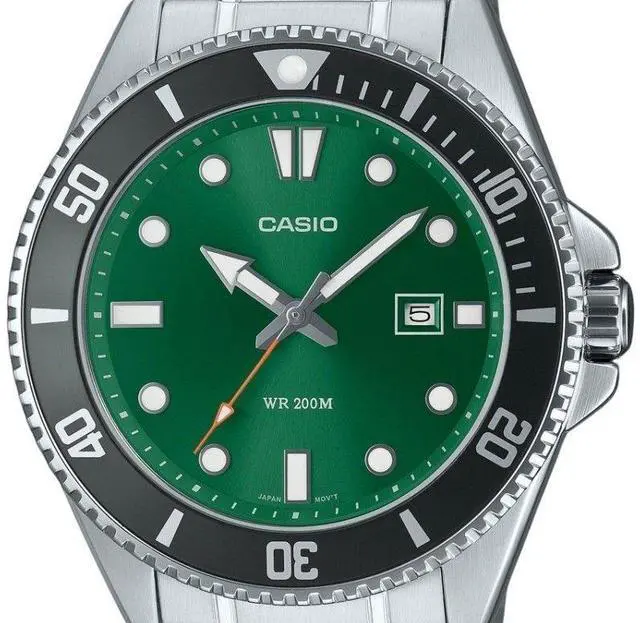 Casio Standard Analog Stainless Steel Green Dial Quartz MDV-107D-3A2V MDV107D-3A2V 200M Men's Watch