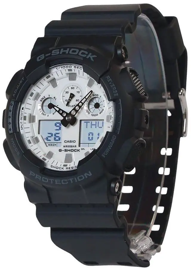 Casio G-Shock Analog Digital Resin Strap White Dial Quartz GA-100WD-1A GA100WD-1 200M Men's Watch