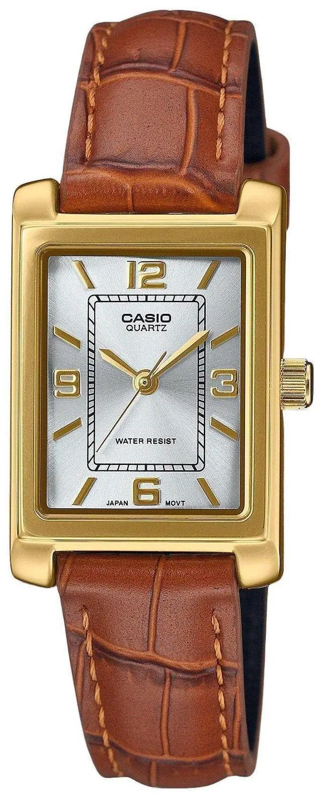 Casio Standard Analog Brown Leather Strap Silver Dial Quartz LTP-1234GLL-7A LTP1234GLL-7 Women's Watch