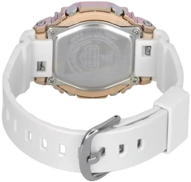 The Casio GM-S2100CW-7A shines with its elegant rose gold dial and white bio-based resin strap, offering a chic yet eco-friendly design. The analog-digital display adds versatility and sophistication, making it both functional and stylish. Powered by quartz movement, this watch guarantees precision in timekeeping, while its 200-meter water resistance ensures durability for outdoor and everyday use. With its shock-resistant construction, this watch blends refined aesthetics with G-Shock's rugged reliability, perfect for the fashion-forward woman with an active lifestyle.