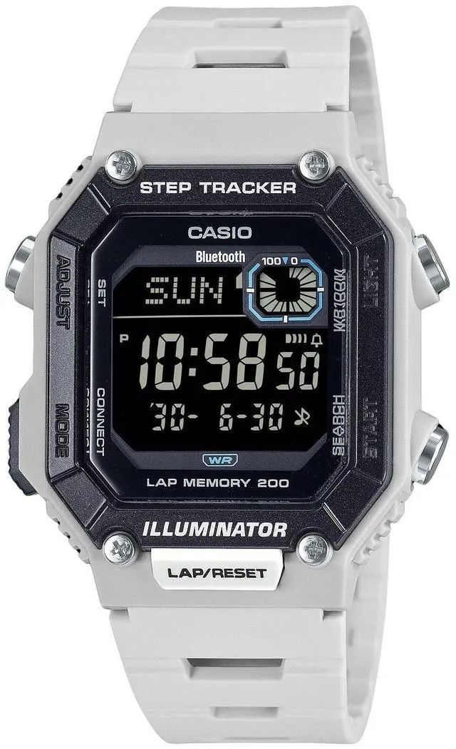 Experience modern technology and sleek design with the Casio WS-B1000-8BV. This watch features a step tracker and smartphone connectivity, helping you stay on top of your fitness goals while keeping you connected on the go. The robust grey resin strap combines durability with a stylish, understated look. With water resistance up to 100 meters, it's ready for any adventure. Its precise quartz movement ensures youâre always on time, no matter where life takes you.
