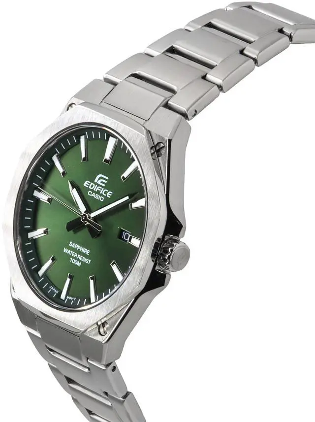 Casio Edifice Sapphire Crystal Analog Stainless Steel Green Dial Quartz EFR-S108D-3A EFRS108D-3 100M Men's Watch