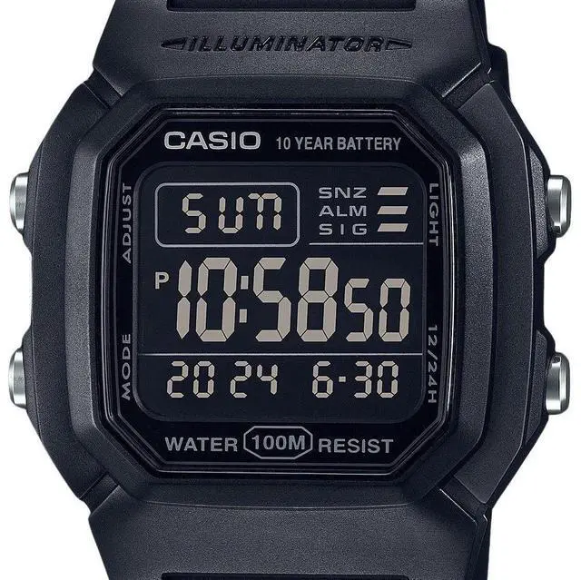 Casio Digital Black Dual Time Resin Strap Quartz W-800H-1BV W800H-1B 100M Men's Watch