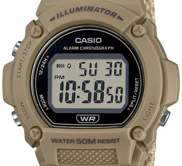 The Casio W-219HB-5AV stands out with its rugged brown digital design, offering a unique, earthy tone. Its durable cloth strap provides both comfort and durability, perfect for daily wear. The clear digital display ensures easy time reading, while the 50-meter water resistance makes it suitable for light water activities. Powered by reliable quartz movement, this watch guarantees precise timekeeping, combining functionality with a stylish, outdoor-ready aesthetic. Ideal for those who seek both fashion and performance in a versatile timepiece.