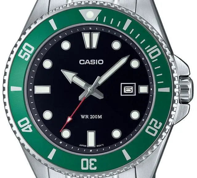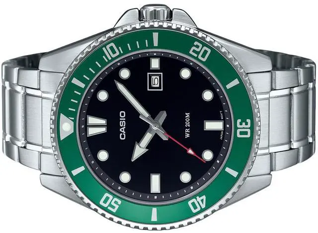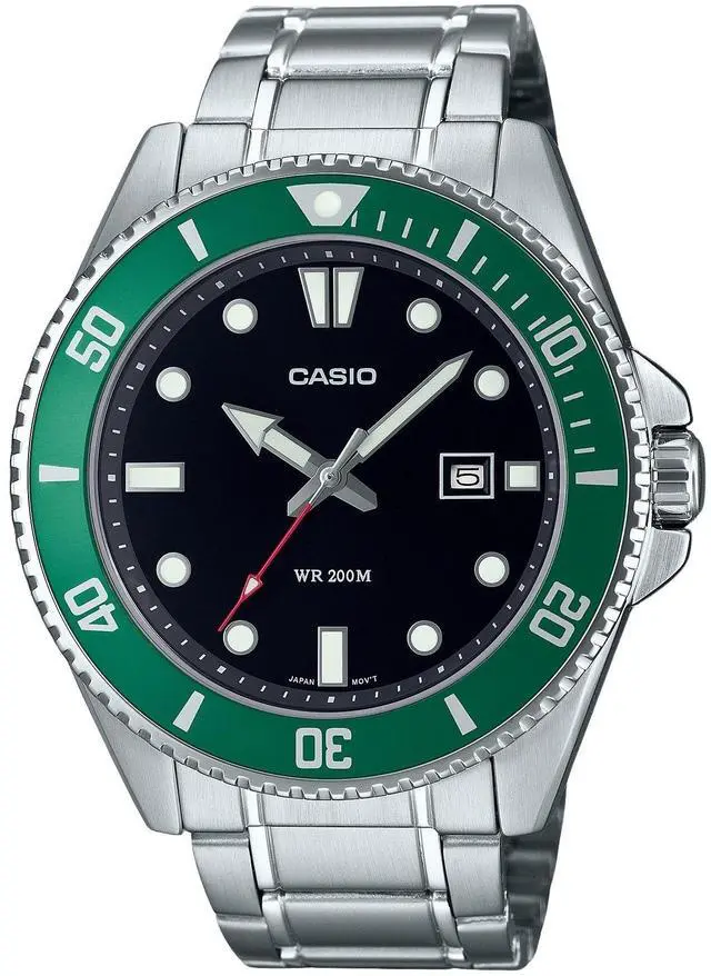 The Casio MDV-107D-3 features a striking black dial complemented by luminous hands and markers, making it perfect for low-light visibility. Its robust stainless steel case and bracelet ensure durability, while the 200-meter water resistance makes it ideal for underwater adventures. Powered by a precise quartz movement, this watch is designed for reliability and rugged performance, making it a perfect choice for both daily wear and outdoor activities.