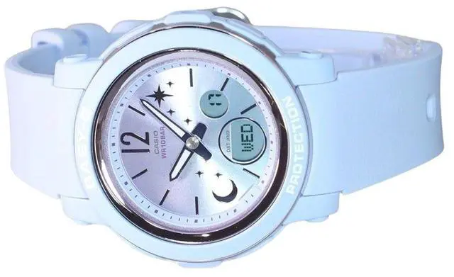 The Casio BGA-290DS-2A captivates with its enchanting purple dial from the Moon and Star Series, blending whimsical design with everyday practicality. This analog-digital watch is set on a comfortable resin strap and powered by quartz movement for reliable precision. With 100-meter water resistance, itâs ready for adventures while maintaining its fashionable edge. Perfect for those who love unique aesthetics with functional appeal, this watch adds a celestial charm to any outfit.