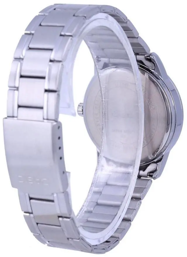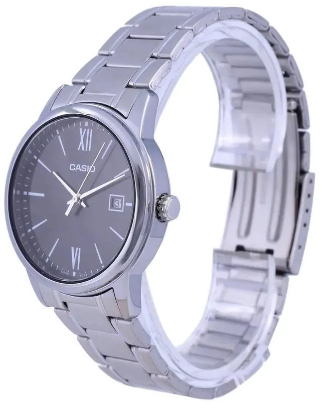 The Casio MTP-V002D-1B3 is a polished analog timepiece crafted for men who appreciate classic styling and dependable design. With a black dial accented by Roman numeral and bar hour markers and housed in a stainless steel case, it offers a refined yet versatile look suited for work or casual wear. The stainless steel bracelet adds to its cohesive design and delivers durability. The display also includes a date window for enhanced functionality. Finished with mineral glass for clarity and water resistance for everyday use, this watch blends elegance and practicality into one timeless piece.