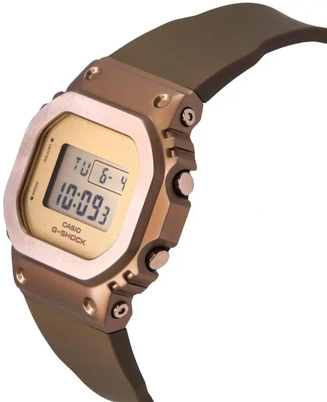 Add a touch of elegance to your wrist with the Casio GM-S5600UBR-5. This watch features a durable resin case and a bio-based resin strap, emphasizing sustainability. The bronze dial with a digital display is protected by a mineral crystal, ensuring longevity. Key features include shock resistance, a 1/100 second stopwatch, countdown timer, multi-function alarm, and 200M water resistance. The LED backlight with afterglow provides clear visibility in low light, while the brown ion-plated bezel adds a sophisticated finish. The full auto calendar and 12/24 hour format enhance daily convenience.