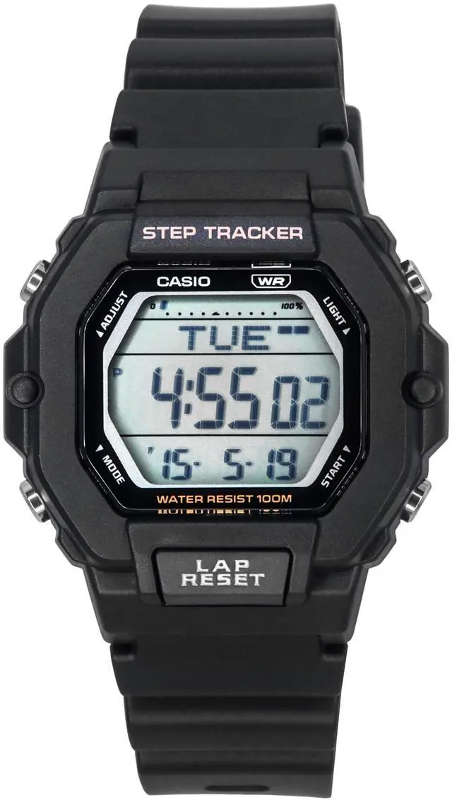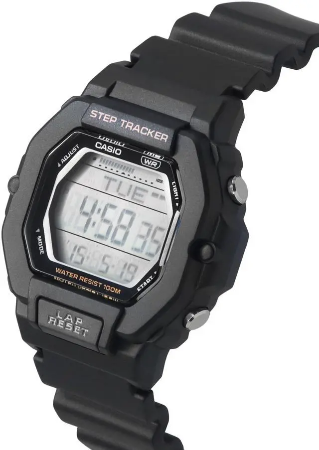 With a sleek digital display, the Casio LWS-2200H-1A ensures effortless readability. Encased in robust black resin, it boasts unmatched durability suited for active lifestyles. Its 100-meter water resistance makes it ideal for swim sessions or outdoor adventures. The watchâs versatile alarm and stopwatch features provide functional enhancements, perfectly blending performance with practicality. A go-to choice for those valuing both utility and style.