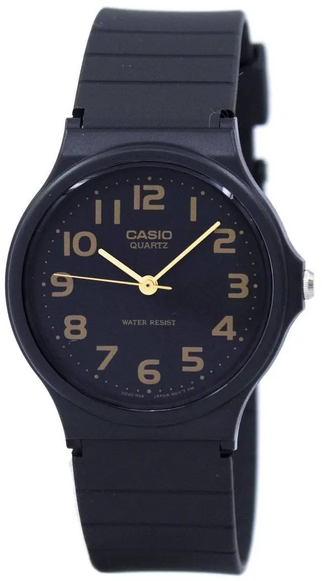 Casio Classic Quartz Black Strap MQ-24-1B2LDF MQ24-1B2LDF Men's WatchNot like those that run on bling, this analogue watch has prominent golden markers that stand out and make time-telling easy. Itâs not about frills, unnecessary functions, features or buttons; just plain, hardcore, no-nonsense time-telling. The cheapest retro look that money can buy, itâs highly accurate and leaves no ground for guesswork! Change the battery every couple of years and youâll see it happily ticking even after decades.