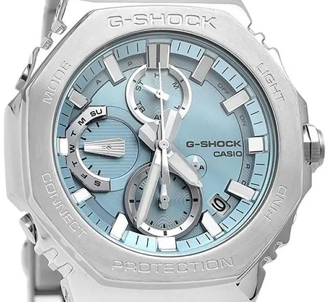 Casio G-Shock Full Metal Analog Chronograph Smartphone Link Ice Blue Dial Tough Solar GMC-B2100AD-2A GMCB2100AD-2 200M Men's Watch