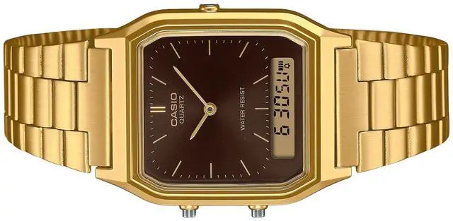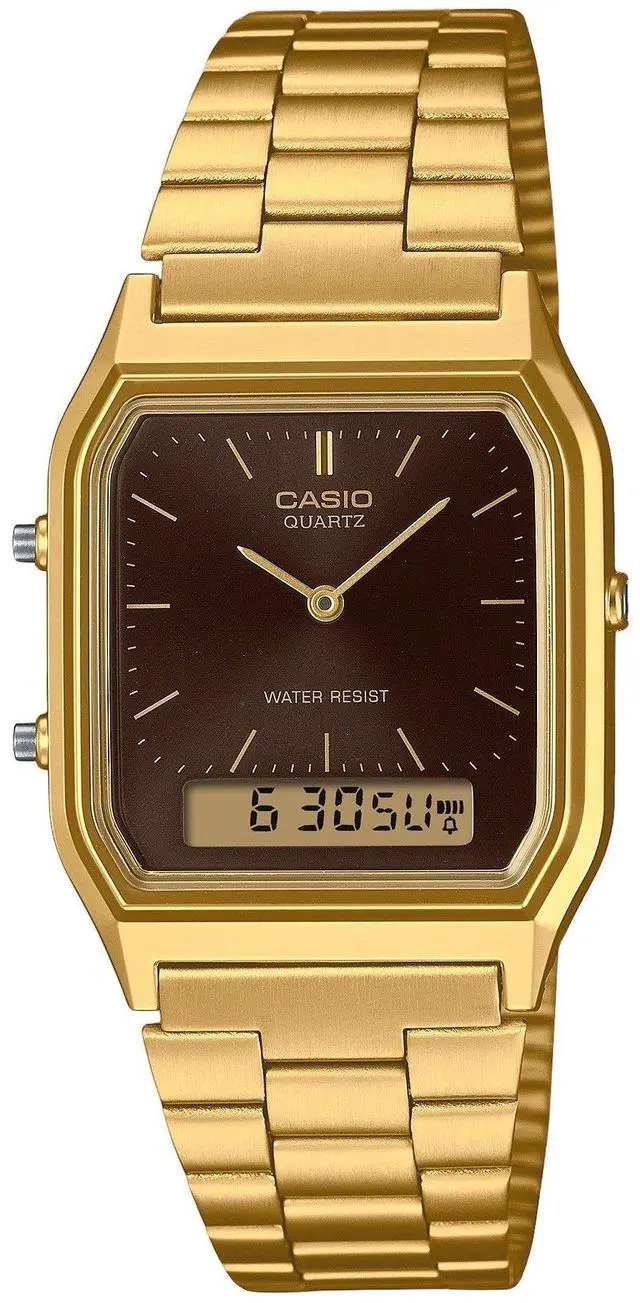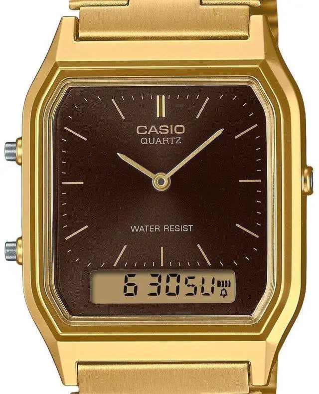 Casio Vintage Analog Digital Gold Tone Stainless Steel Brown Dial Quartz AQ-230GA-5A AQ230GA-5 Unisex Watch