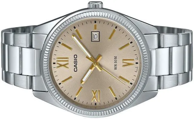 Casio Standard Analog Ion Plated Stainless Steel Beige Dial Quartz MTP-1302DD-9AV MTP1302DD-9AV Men's Watch
