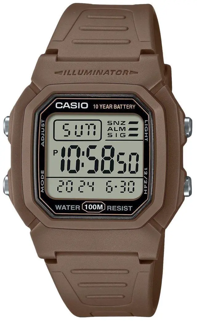 Casio Digital Brown Dual Time Resin Strap Quartz W-800H-5AV W800H-5 100M Men's Watch