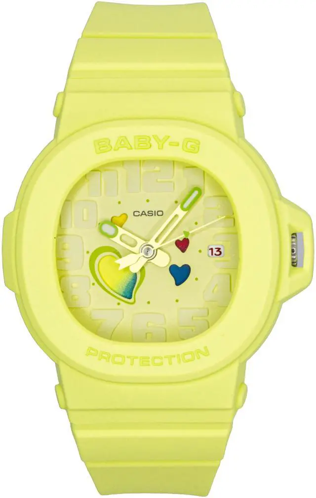 Casio BGA-10-3A combines a vibrant green dial with playful heart accents, making it a fun and stylish accessory for any woman. Powered by reliable quartz movement, it ensures precise timekeeping, while the durable resin strap offers comfort for all-day wear. With 100m water resistance, this timepiece is perfect for both everyday activities and light swimming. The BGA-10-3A is a versatile and functional addition to your collection of quartz women's watches, blending fashion with practicality in one eye-catching design.