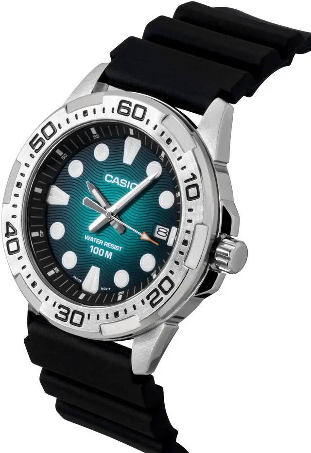 Casio MTD-140-3AV makes a bold statement with its vibrant green dial, offering a fresh, energetic look. This stylish watch features quartz movement for accurate timekeeping and is housed in a durable stainless steel case. With 100m water resistance, itâs designed to handle a variety of outdoor activities, making it perfect for active men. The classic design, combined with modern functionality, makes this timepiece an essential in any collection of quartz men's watches, adding both reliability and flair to your everyday wear.