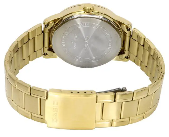 Powered by a precise quartz movement, the MTPV002G1B offers an accuracy of ±20 seconds per month and a battery life of approximately 3 years on an SR626SW cell. The mineral glass crystal provides durability and scratch resistance, while the triple-fold clasp ensures a secure and comfortable fit on the wrist. With its splash-resistant design, this watch is suitable for everyday wear, offering both style and functionality.