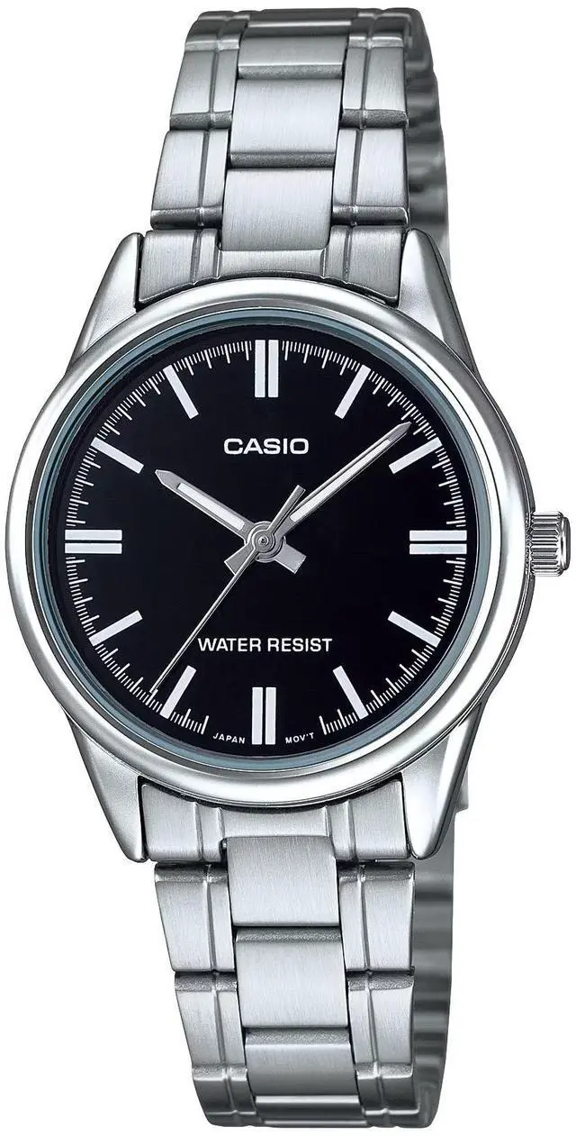 The Casio LTP-V005D-1AUDF combines simplicity and sophistication for the modern woman. Featuring a striking black dial set in a polished stainless steel case, this elegant timepiece offers a minimalist yet timeless look. Its durable metal bracelet ensures everyday comfort, while the water-resistant construction adds reliability for daily wear. Perfect for both professional and casual settings, this watch is a stylish essential for any collection.