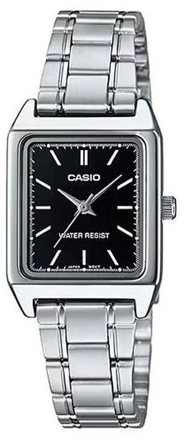 The Casio LTP-V007D-1EUDF showcases sleek sophistication in a timeless design. Featuring a rectangular black dial with minimalist silver markers, this womens watch is a perfect balance of elegance and modern style. Its stainless steel bracelet adds durability and polish, making it ideal for both everyday wear and formal occasions. With precise quartz movement and water resistance, its a refined accessory built for reliability and grace.