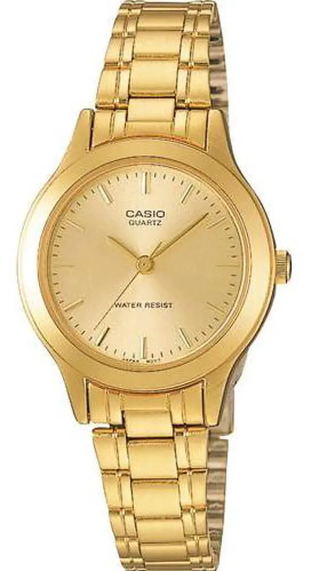 The Casio LTP-1128N-9A is a timeless womens wristwatch that combines minimalist design with classic elegance. Its polished gold-tone stainless steel case and bracelet perfectly complement the champagne-colored dial, creating a sophisticated accessory for any occasion. Featuring precise quartz movement and water resistance, this watch delivers both reliability and refinement for everyday wear. Lightweight and comfortable, its ideal for women who appreciate subtle luxury and enduring style.