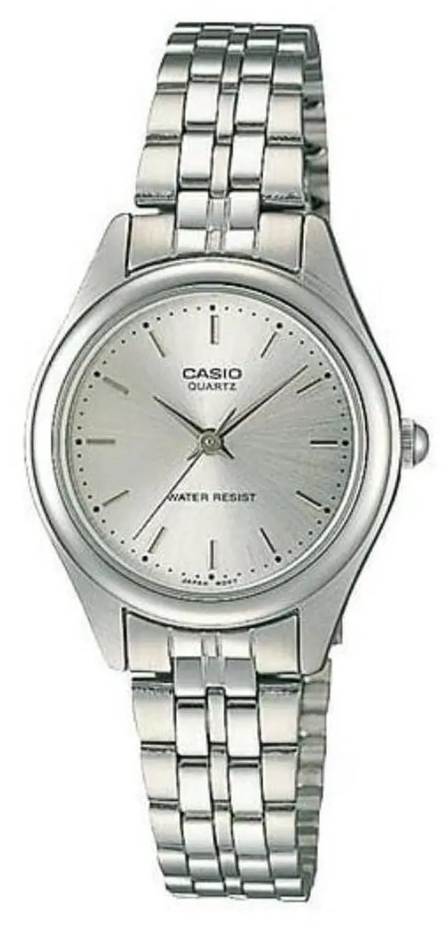 The Casio LTP-1129A-7A is a classic womens analog watch designed for everyday elegance. It features a sleek stainless steel case and matching bracelet, anchored by a crisp white dial with refined hour markers and slender hands. With mineral glass for clarity and durable daily performance, this timepiece embodies simplicity and style, perfect for work or casual wear.