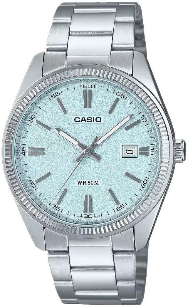 The Casio MTP-1302DA-2A2VDF is a sophisticated analog watch designed for men who appreciate refined style and everyday functionality. It features a blue dial with a stainless steel case and matching bracelet, creating a polished and cohesive look. With a date display at 3 oclock, mineral glass protection, and water resistance suitable for daily wear, this timepiece blends classic aesthetics with practical durability.