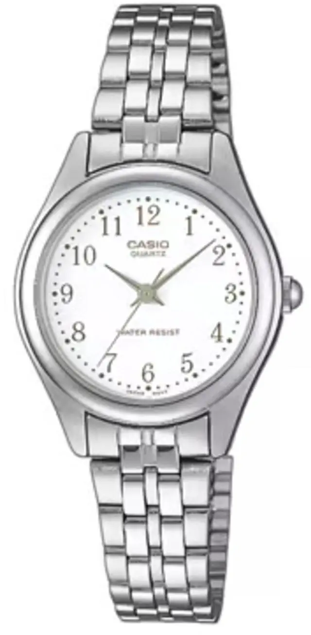 The Casio LTP-1129A-7B offers a perfect blend of timeless elegance and everyday practicality. Designed with a clean white dial and polished silver-tone stainless steel bracelet, this womens analog watch brings effortless sophistication to any look. The easy-to-read Arabic numerals and precise quartz movement ensure both clarity and accuracy, making it ideal for daily wear. Compact, durable, and comfortable, its the perfect companion for women who value simplicity and style.