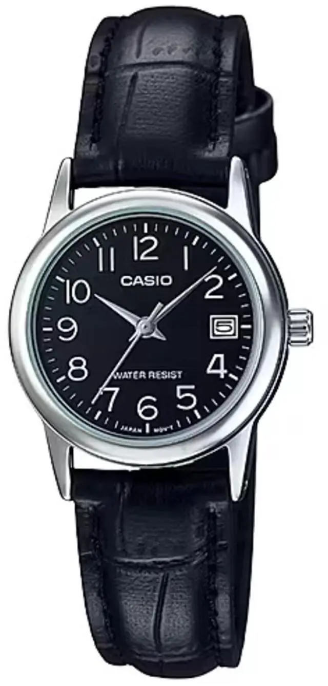 The Casio LTP-V002L-1BUDF blends timeless elegance with everyday practicality. Designed with a polished silver-tone case and a black dial featuring clear Arabic numerals, this watch delivers easy readability and classic appeal. The matching black leather strap adds comfort and sophistication, making it a perfect companion for work, travel, or casual outings. Complete with a date display and reliable quartz movement, its a dependable choice for modern women.
