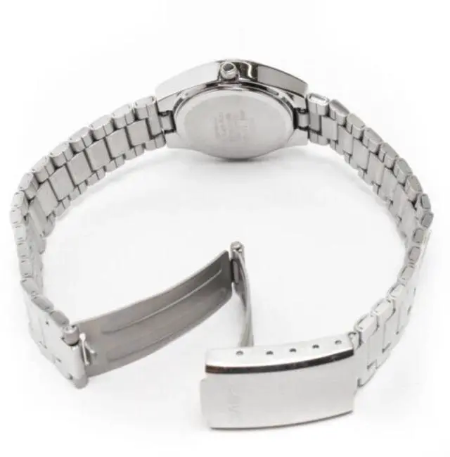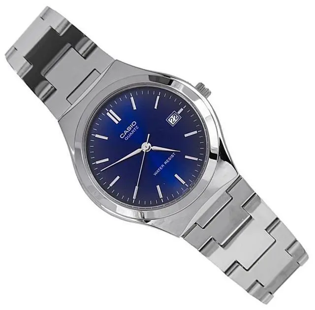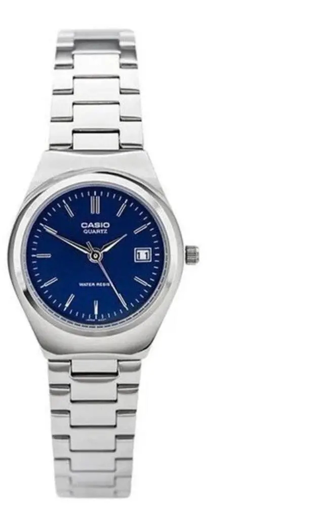 This Casio womens analog watch features a deep blue dial paired with a sleek silver stainless steel case for a refined everyday look. The minimalist design is balanced with a date display that adds practical functionality without clutter. A slim profile and lightweight construction make it comfortable for extended daily wear. Quartz movement ensures reliable and consistent timekeeping. Designed for versatility, this watch transitions easily from professional settings to casual outings.