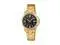 This Casio womens watch features a bold black dial framed by a gold tone case for a confident, polished look. Clear hour markers and luminous hands provide easy readability throughout the day. The integrated gold bracelet adds a refined finish that transitions effortlessly from casual to dress wear. A convenient date window enhances everyday practicality without crowding the dial. Designed for reliable daily use, this timepiece blends classic styling with modern functionality.