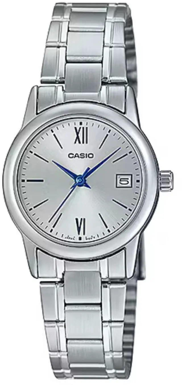 This Casio womens analog watch delivers a refined everyday look with a clean silver dial and classic markers. The slim round case pairs effortlessly with the polished stainless steel bracelet for comfortable all-day wear. Precise quartz movement ensures reliable timekeeping for daily routines. A date display adds subtle practicality without disrupting the minimalist design. Water resistance supports worry-free use during normal daily activities.