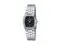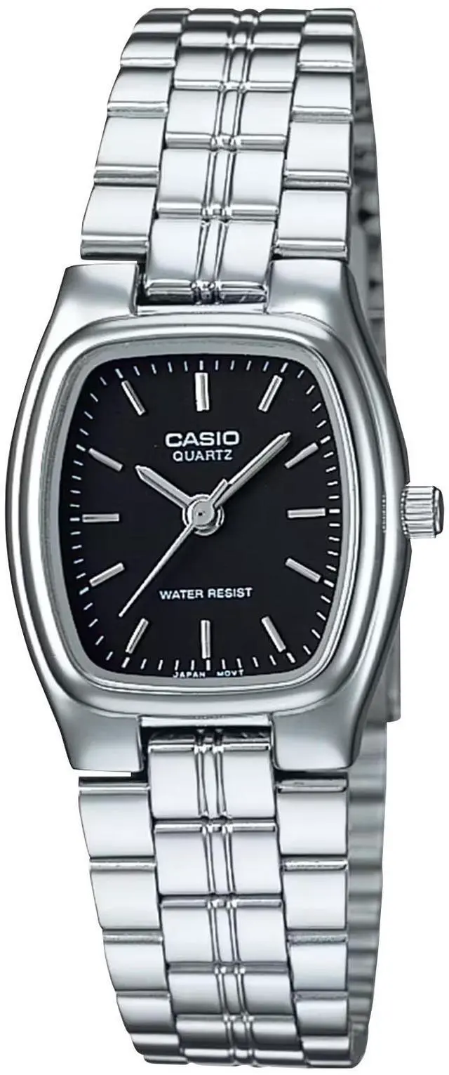 This Casio womens analog watch features a sleek black dial paired with a polished stainless steel bracelet for a modern, refined look. The rectangular case adds a distinctive silhouette that feels elegant and lightweight on the wrist. Slim hour markers and silver-tone hands create clear contrast for easy time reading throughout the day. Designed for everyday wear, this watch transitions smoothly from casual outfits to professional settings. A precise quartz movement delivers dependable performance with minimal maintenance.