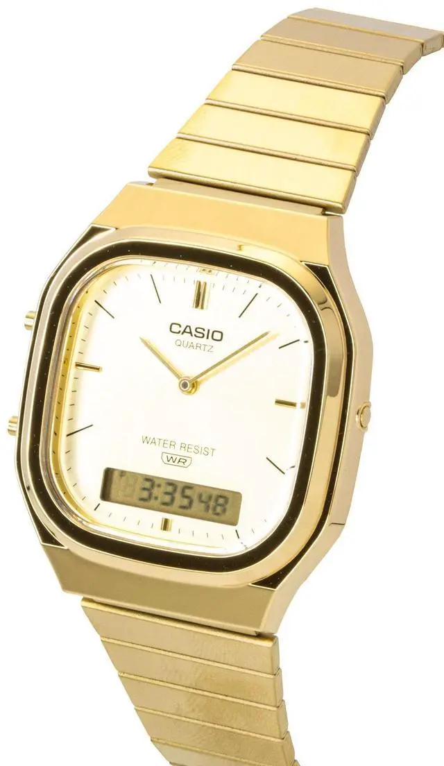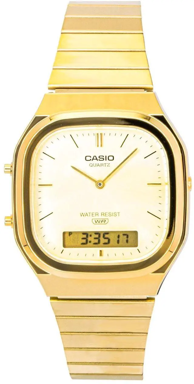Casio Vintage Analog Digital Gold Tone Stainless Steel Gold Dial Quartz AQ-240EG-9A Unisex Watch