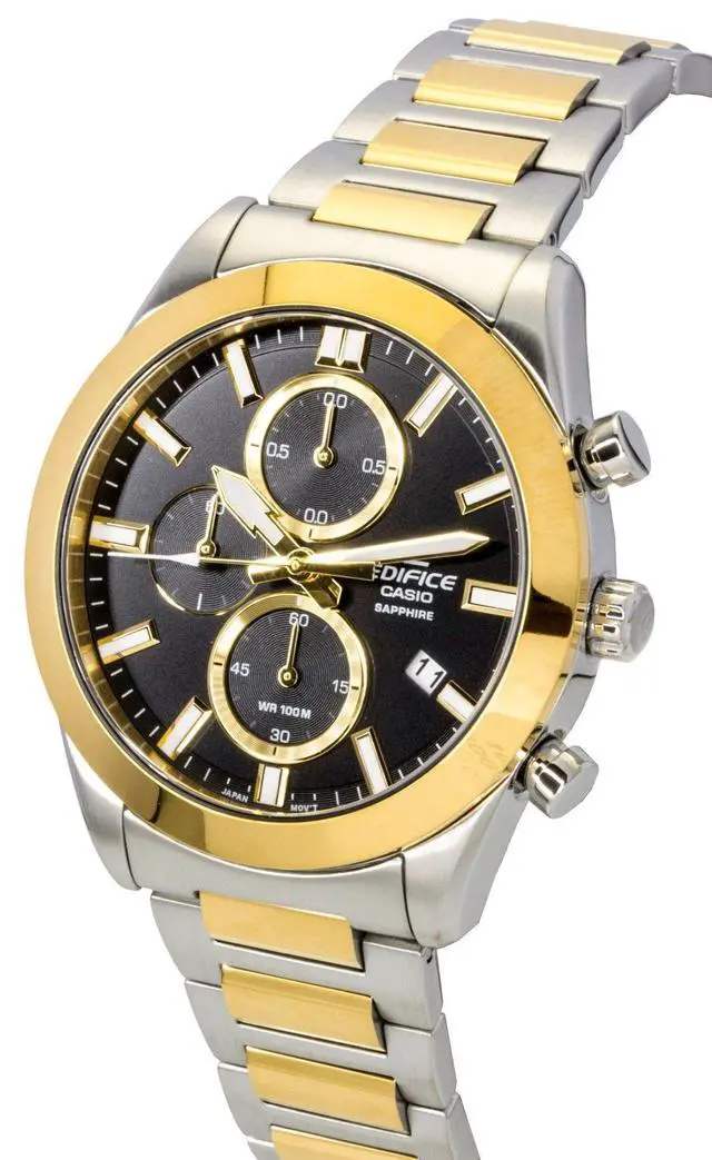 Casio Edifice Analog Chronograph Two Tone Stainless Steel Black Dial Quartz EFB-710SG-1AV EFB710SG-1 100M Men's Watch