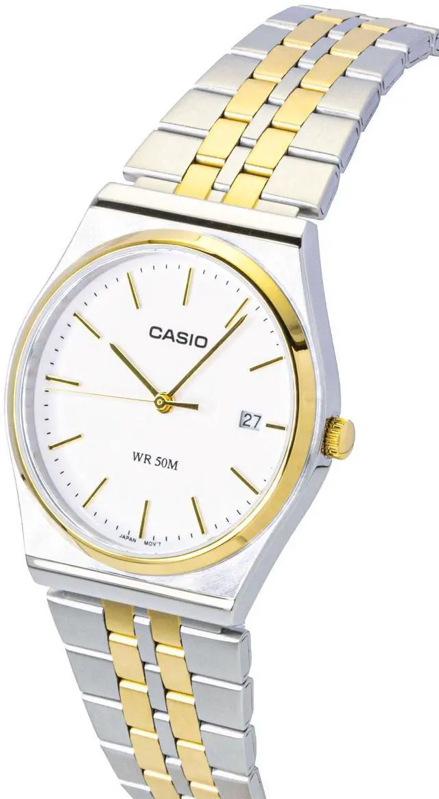 Casio Analog Two Tone Stainless Steel White Dial Quartz MTP-B145SG-7AV MTPB145SG-7 Men's Watch