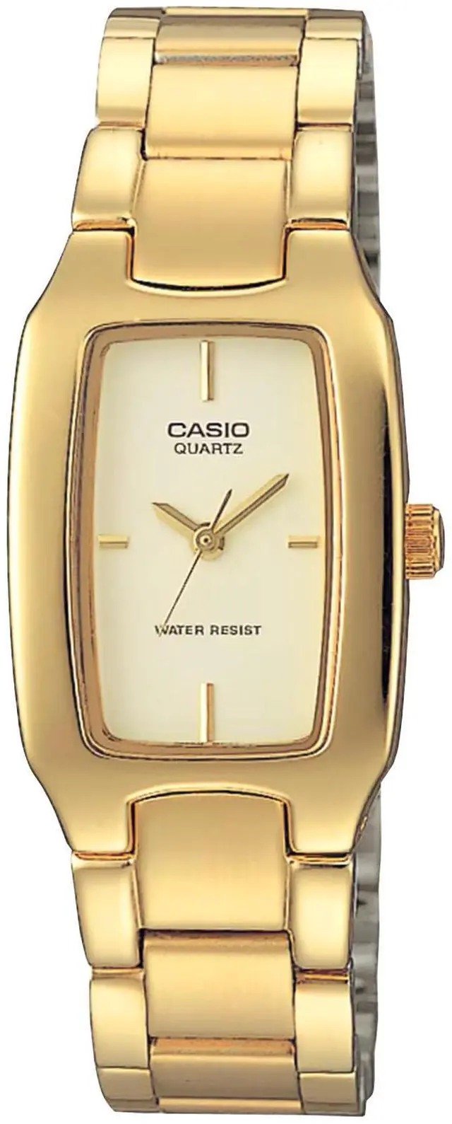 The Casio LTP-1165N-9C is a sleek and refined womens watch that perfectly balances elegance and simplicity. Featuring a slim rectangular champagne dial framed by a polished gold-tone stainless steel case, this watch is designed for women who appreciate understated luxury. Its streamlined silhouette and bracelet-style band make it ideal for both daily wear and formal occasions. Powered by precise quartz movement and built with water resistance, its a timeless companion for any wardrobe.