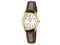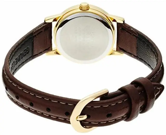 This Casio womens analog watch combines timeless charm with playful detail, featuring a gold-tone case and a tan leather strap for a warm, classic look. The white dial showcases clear Arabic numerals and a subtle illustrated accent that adds character without overpowering the design. Driven by precise quartz movement, this lightweight watch offers dependable everyday timekeeping in a refined and easy-to-wear silhouette.
