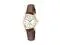 This Casio womens watch features a clean white dial paired with a brown leather strap. The contrast adds a vibrant and stylish touch to a classic design. Its slim case provides a comfortable and elegant fit for daily wear. The analog display ensures clear and simple time reading at a glance. Designed for reliability and versatility, it complements both casual outfits and statement looks.