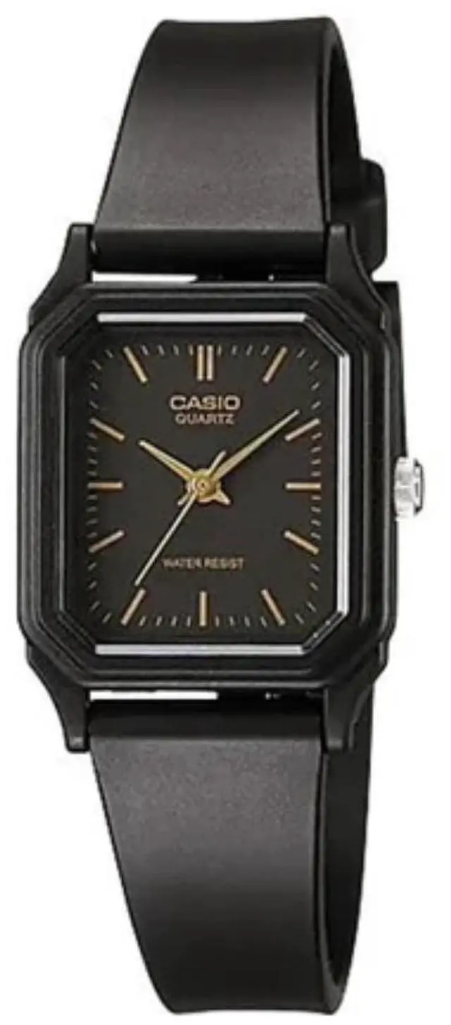This Casio womens watch features a sleek black dial paired with a matching resin strap for a clean and modern look. The minimalist design makes it easy to style with a variety of outfits. Its lightweight construction ensures comfortable wear throughout the day. The analog display provides clear and simple time reading at a glance. Designed for everyday reliability, it is a practical accessory for daily routines.
