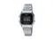 This Casio womens digital watch features a sleek black display paired with a polished stainless steel bracelet. The retro-inspired design brings a modern yet timeless look to everyday wear. Its compact size offers a comfortable fit for smaller wrists. The digital screen provides clear visibility along with useful timekeeping functions. Designed for practicality and style, it is a reliable accessory for daily use.