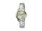 This Casio womens watch features a warm gold dial paired with a two-tone stainless steel bracelet. The combination creates a refined and eye-catching design suitable for everyday wear. Its compact case offers a comfortable and elegant fit on the wrist. The analog display ensures clear and simple time reading throughout the day. Designed for versatility and durability, it complements both casual outfits and formal looks.