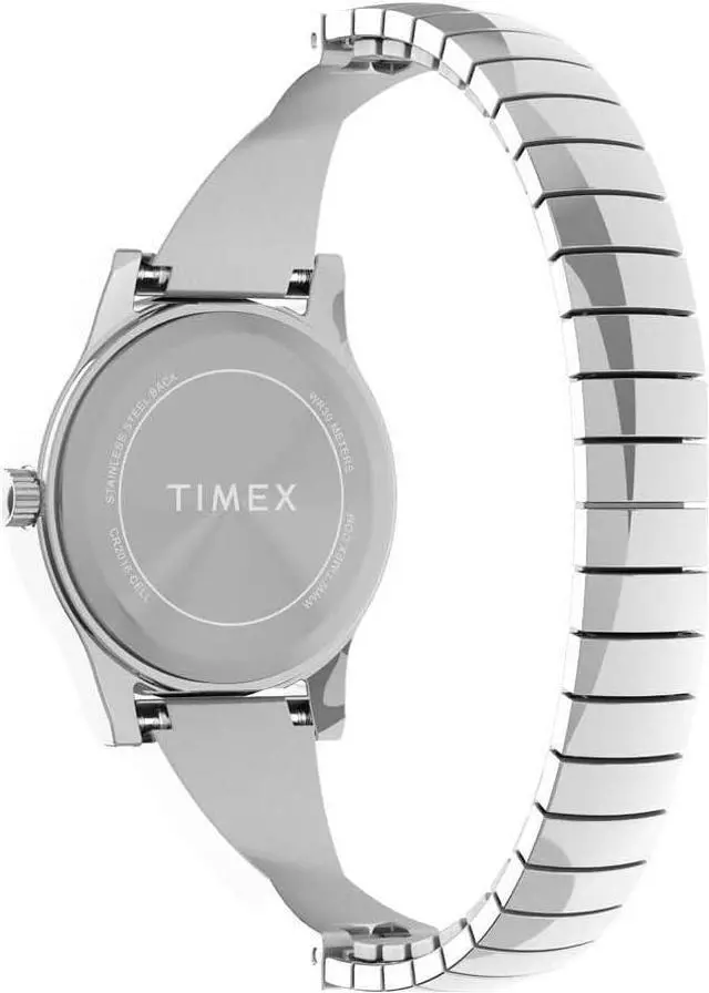 Case Material- Brass and LLB (Round Silver-tone). Case Diameter- 25 mm. Case Thickness- 8 mm. Band Material- Stainless Steel (Expansion Band). Band Color- Silver-Tone. Band Width- 19 mm. Dial- Mother-of-pearl (White) with Arabic numerals. Crystal- Mineral Glass. Movement- Quartz Analog Three-hand. Bezel- Brass and LLB. Water Resistance- 30 meters (Suitable for short swimming). Special Features- INDIGLO Night-Light.