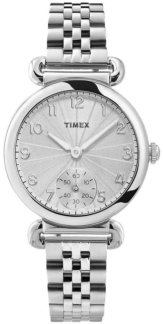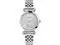 Silver-tone 14mm stainless steel bracelet fits up to 7 5-inch wrist circumference Silver-tone textured guillochA dial with full Arabic numerals Seconds subdial at 6 oclock Silver-tone 33mm stainless steel case with mineral glass crystal Water resistant to 50m (165 ft): In general, suitable for short periods of recreational swimming, but not diving or snorkeling