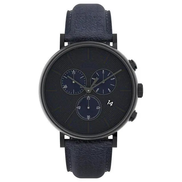 The Timex Fairfield Chrono is a stylish and functional chronograph watch. Its 41mm case and blue leather strap offer a classic and modern look. The chronograph function allows you to time events with precision while the water resistance makes it suitable for everyday wear. Timex Mens Fairfield Chrono 41mm Watch - Black Case & Blue Dial with Blue Genuine Leather Strap.