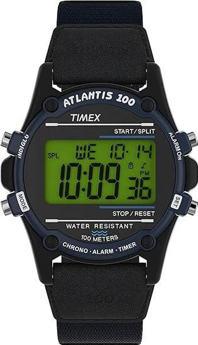 The Timex Expedition Atlantis is a rugged and reliable digital watch. Its 40mm case and durable construction make it perfect for outdoor adventures. The digital display provides clear and easy-to-read information while the multiple functions including alarms and stopwatches make it a versatile timepiece. Timex Mens Expedition Atlantis 40mm Watch - Black Case with Blue Fabric/Leather Strap.